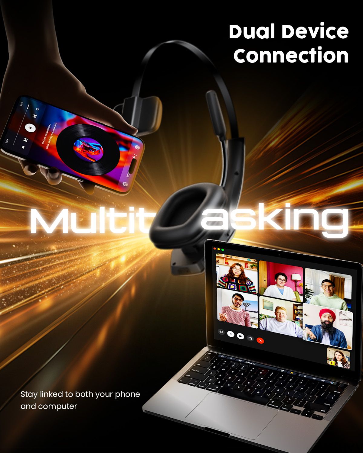 Easy to Connect and Switching for Two Devices: This wireless headset can connect two devices simultaneously and switch calls with one click MFB. This Bluetooth headset adopts the Bluetooth 5.3 technology, which makes Bluetooth connection quickly, efficiently and stably—ideal for multitasking professionals
